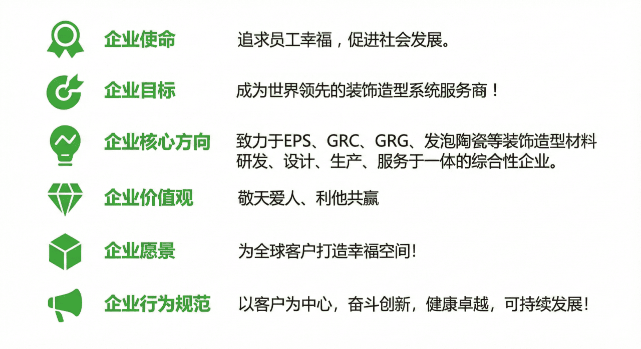 重點(diǎn)發(fā)展發(fā)泡陶瓷——穩(wěn)定發(fā)展工程線條市場(chǎng),重點(diǎn)發(fā)展發(fā)泡陶瓷線條。立足四川,走向全國(guó),進(jìn)入全球市場(chǎng)